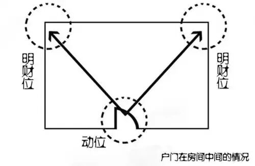 由此可见,不同的房间因为“户门”所处的位置不同,“明财位”所在的位置也不一样,一般可分为两种:当“户门”在房间一角时,“明财位”在与“户门”对角的位置;当“户门”在房间某面墙中间开门时,则在与“户门”成斜对角方向存在对称的两个“明财位”。