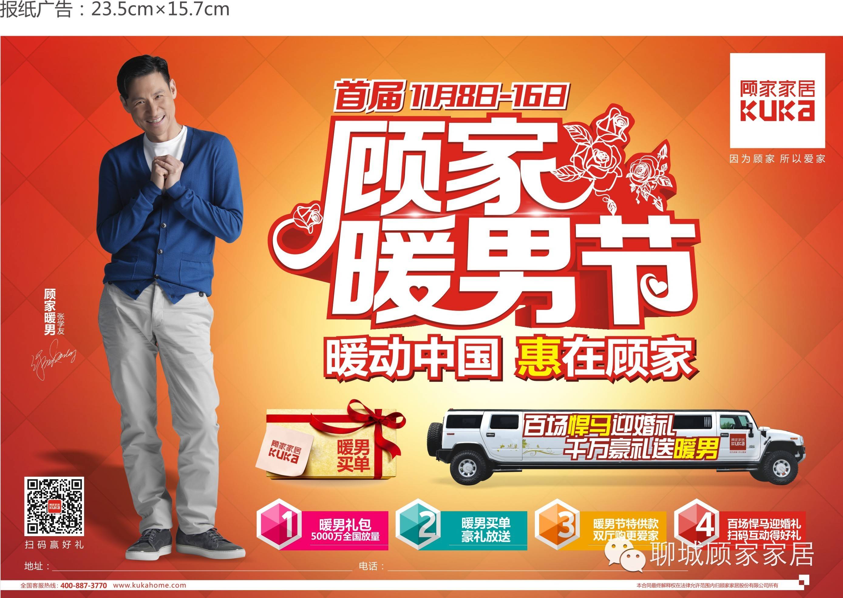 顾家家居首届暖男节聊城站正式启动啦!你是你家人眼中的暖男吗?如果是,就扫码吧!